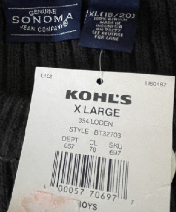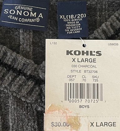 Description: Brand new boy's sweater from Kohl's. Black and gray color. Size boys extra large 18/20